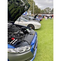 Meeting at the Caltex servo at Arndale we only had 3km to drive to the oval where the show was being held. We were able to line up together and with the big marquee and flags etc put up we looked pretty impressive!! Thanks to Pete for bringing the trailer out, it looked great to have it as part of the display.
